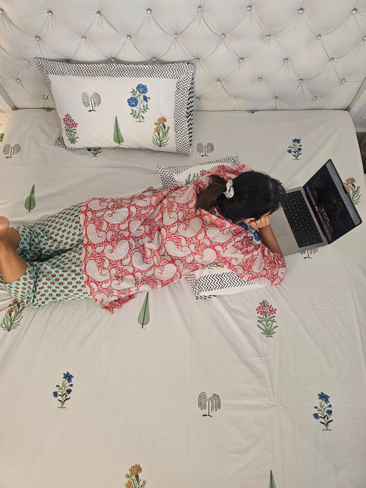 BloomBed Handblock Print Pure Percale Cotton Bedsheet