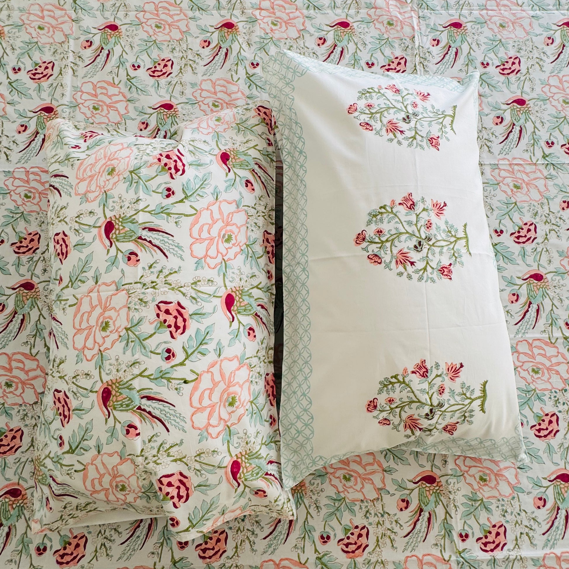 Amber Blossom Handblock Print Pure Percale Cotton Bedsheet