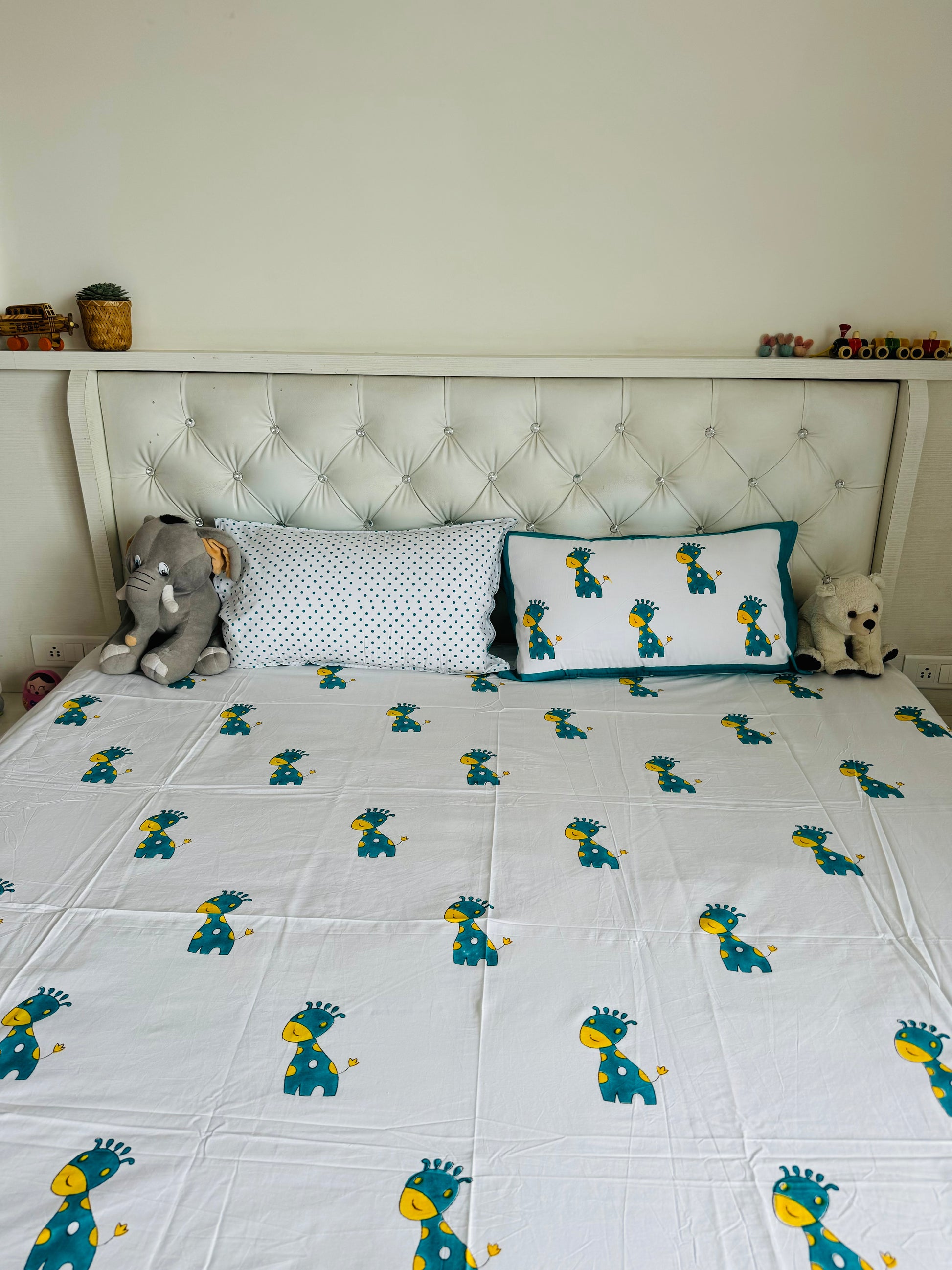Baby Giraffe Handblock Percale Cotton Kids Bedsheet