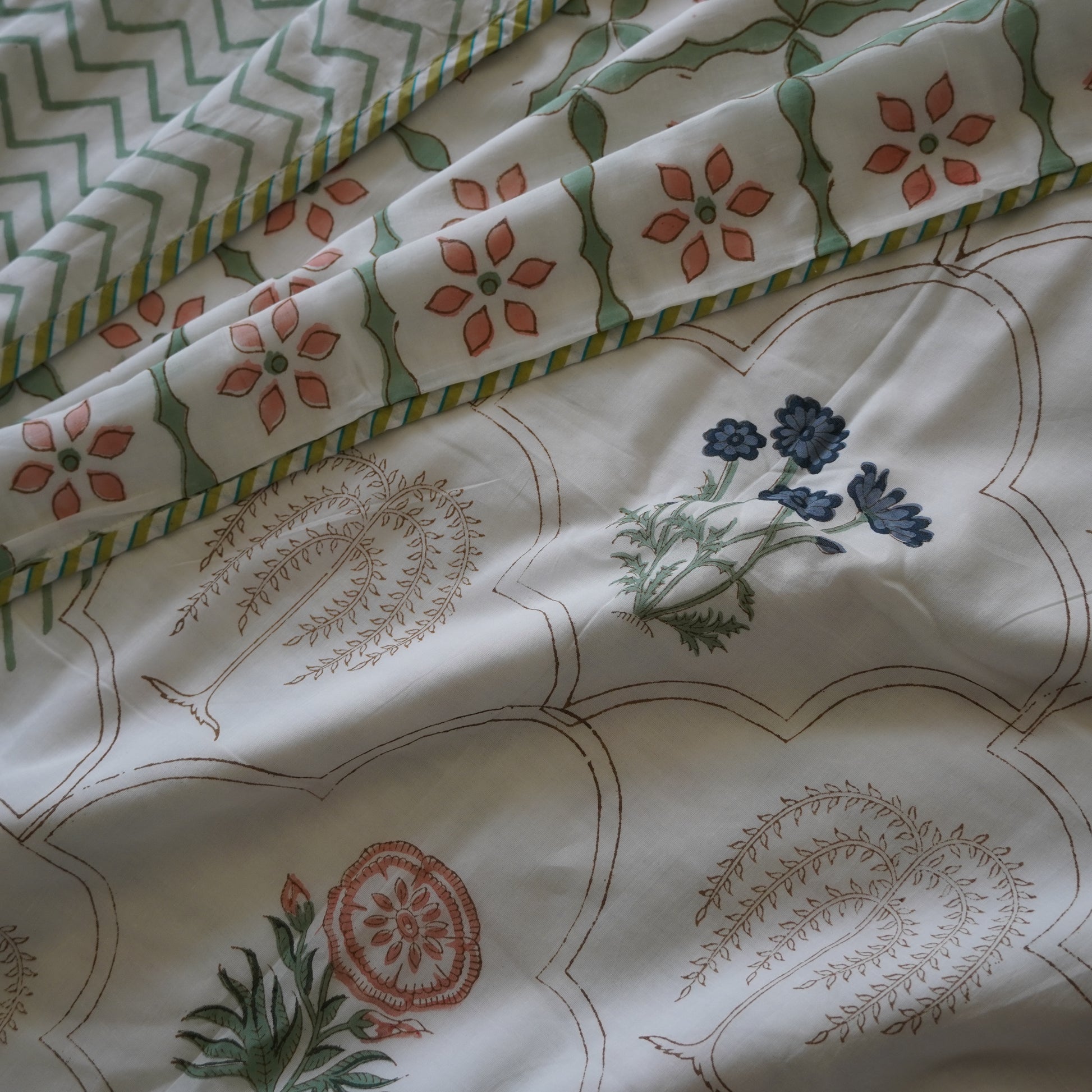 4. Reversible Design: Enjoy the versatility of our reversible dohars, featuring complementary patterns or colors on each side for effortless style updates and enhanced flexibility in your bedroom decor.