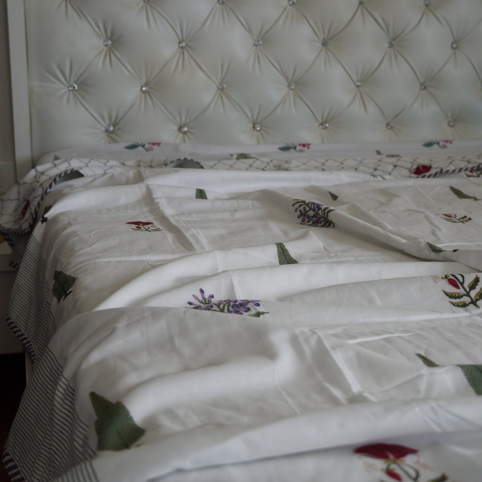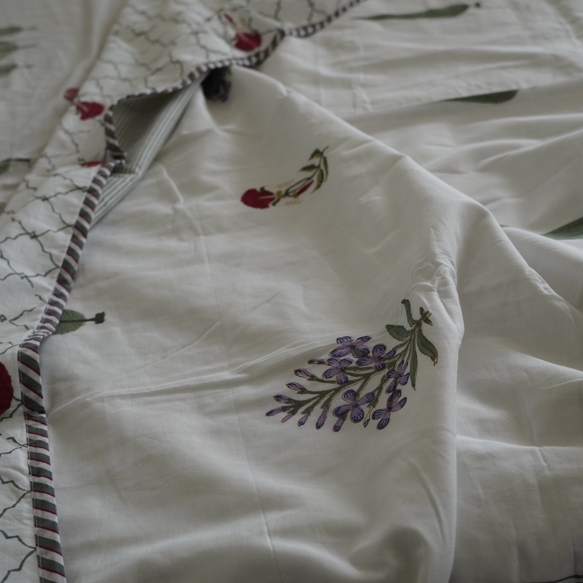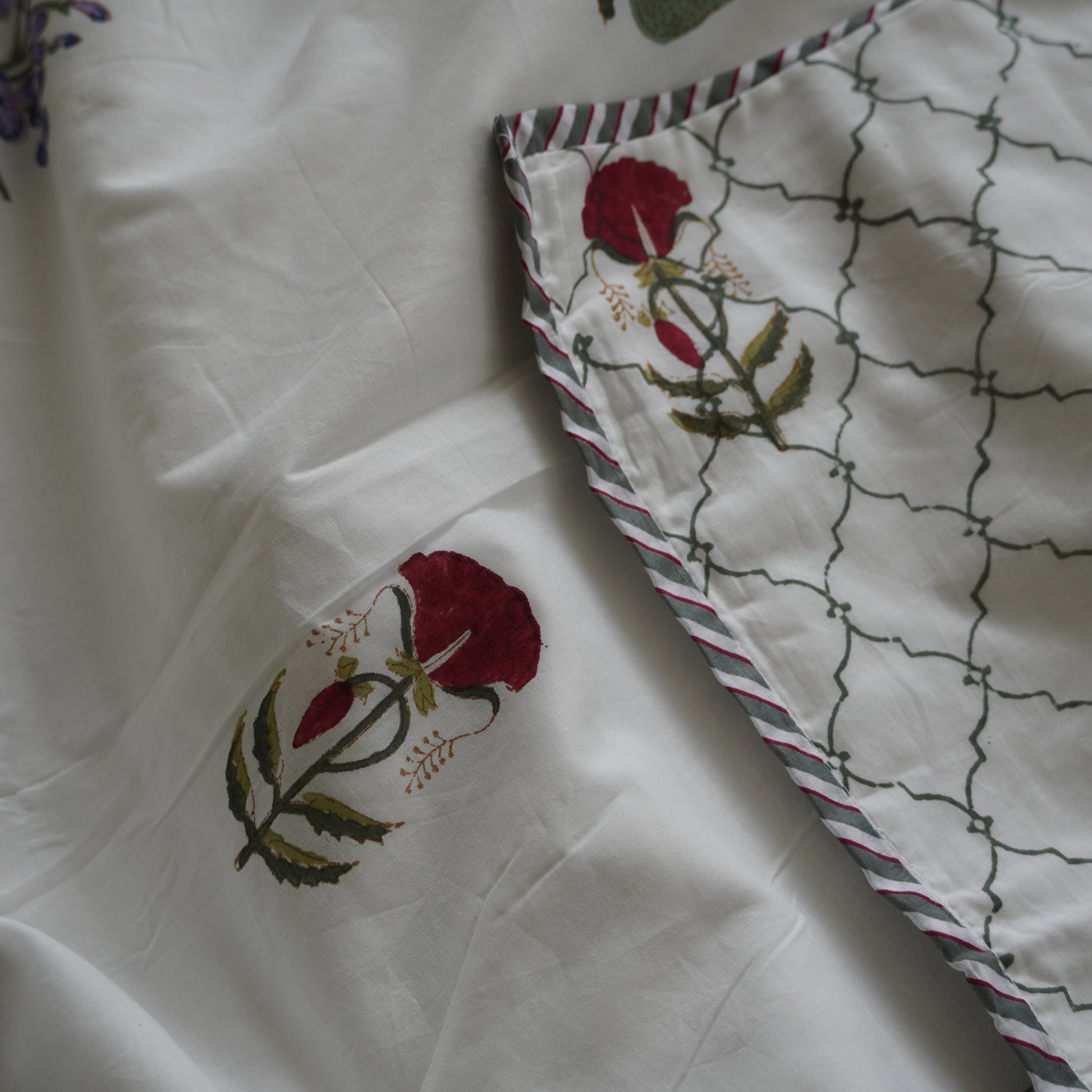 Experience the unmatched comfort of our handblocked AC dohar. Made with 100% pure mul cotton with a flannel sheet in between, this reversible dohar is soft and breathable. Perfect for all seasons, it keeps you warm in winter and cool in summer.