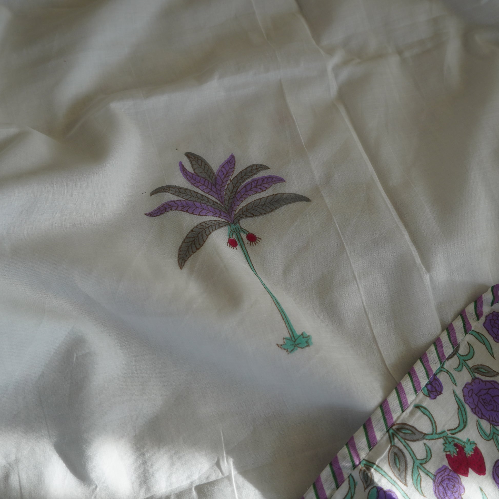 Handblock printing, known for its imperfections, offers a distinct beauty that can only be achieved through this traditional printing method. As a result, the product may display variations in color, irregular shapes, varied sizes, and little smudges adding to its charm and authenticity.
