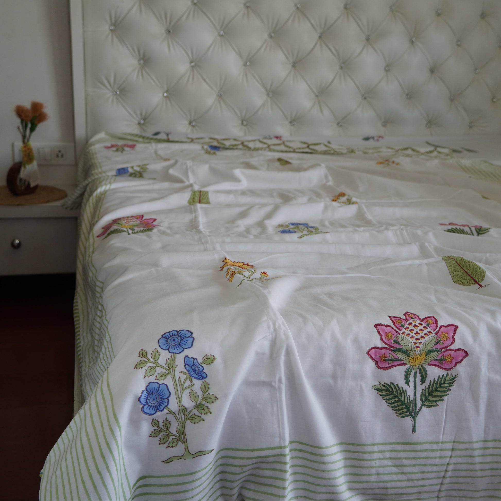 1. Breathable Pure Mul Cotton Comfort: Our cotton dohars for summer are designed to keep you cool and comfortable during warm nights, providing the perfect balance of softness and breathability.