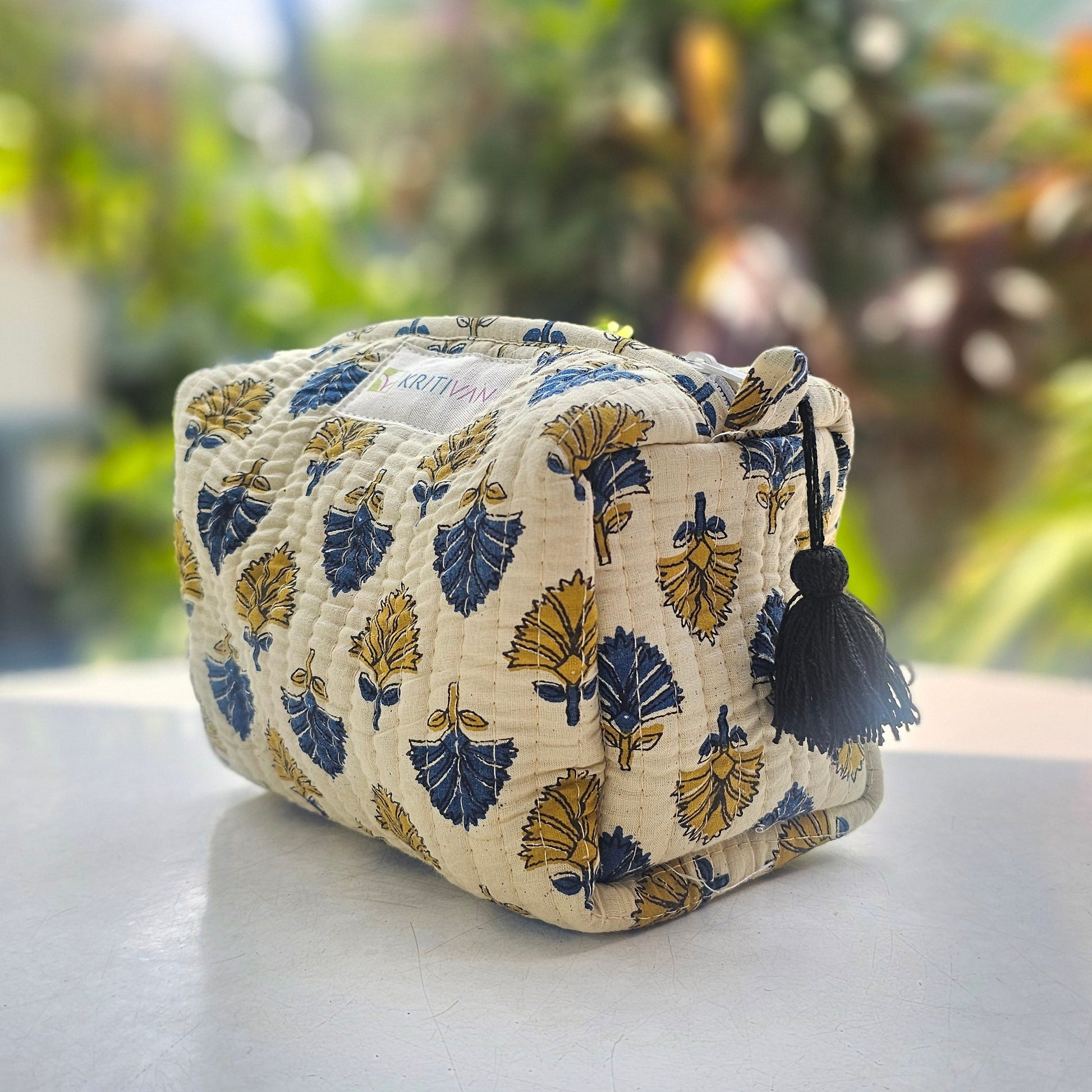 Travel and organize in style with Kritivan's Quilted Travel/Makeup Pouch! This versatile pouch is perfect for keeping your essentials neatly arranged—whether it’s makeup tools, cosmetics, travel accessories, or medicines. Crafted with care, it features an eye-catching design, a durable waterproof lining for added protection, and thoughtful functionality that blends elegance with practicality.