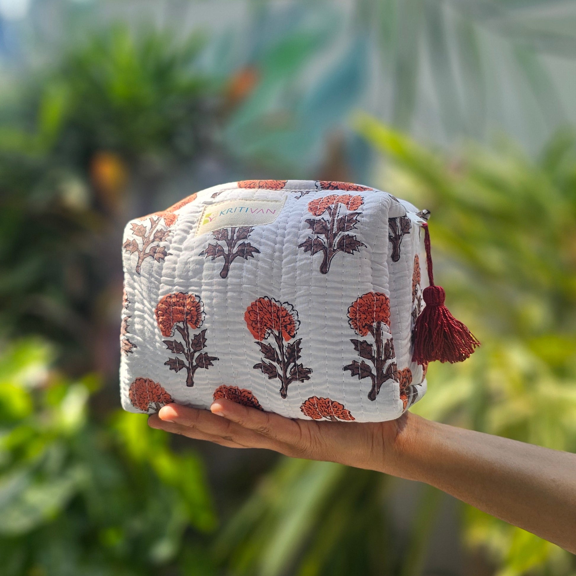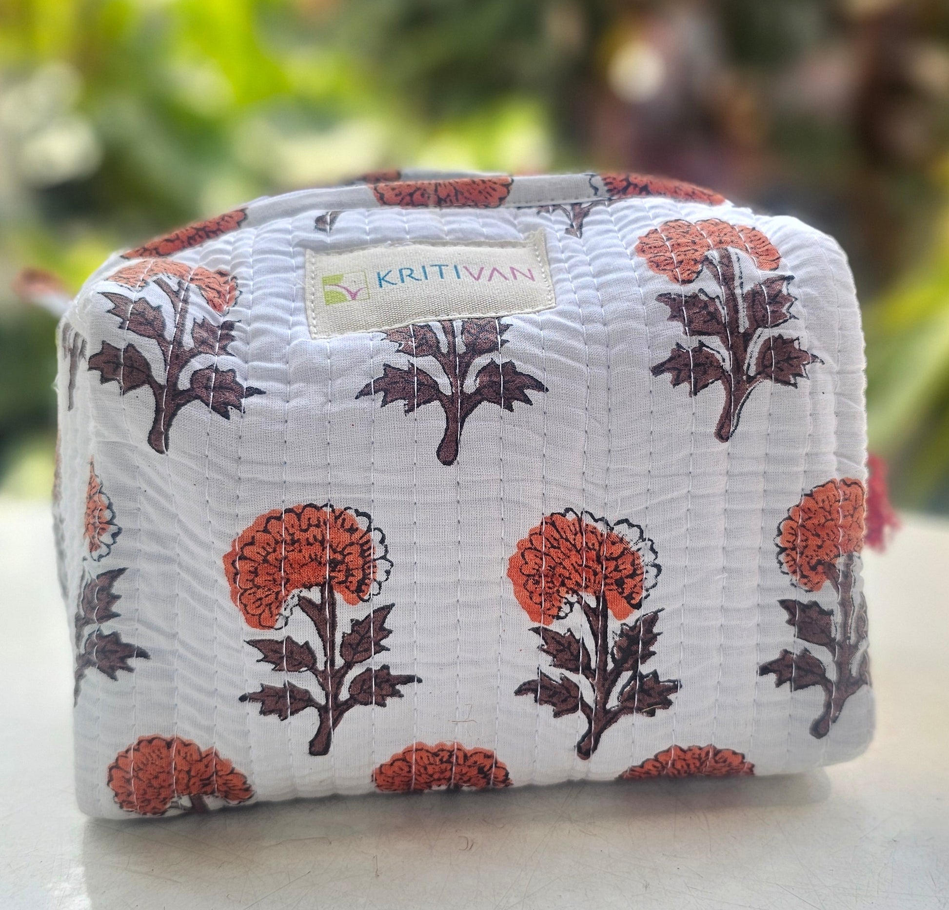 Travel and organize in style with Kritivan's Quilted Travel/Makeup Pouch! This versatile pouch is perfect for keeping your essentials neatly arranged—whether it’s makeup tools, cosmetics, travel accessories, or medicines. Crafted with care, it features an eye-catching design, a durable waterproof lining for added protection, and thoughtful functionality that blends elegance with practicality.