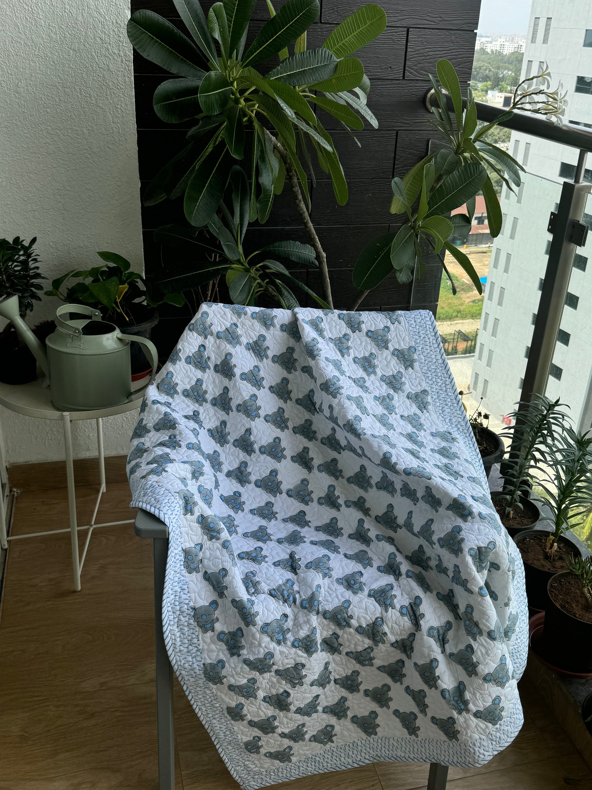 Teddy's Snuggle Handblock Kids Mulmul Quilt