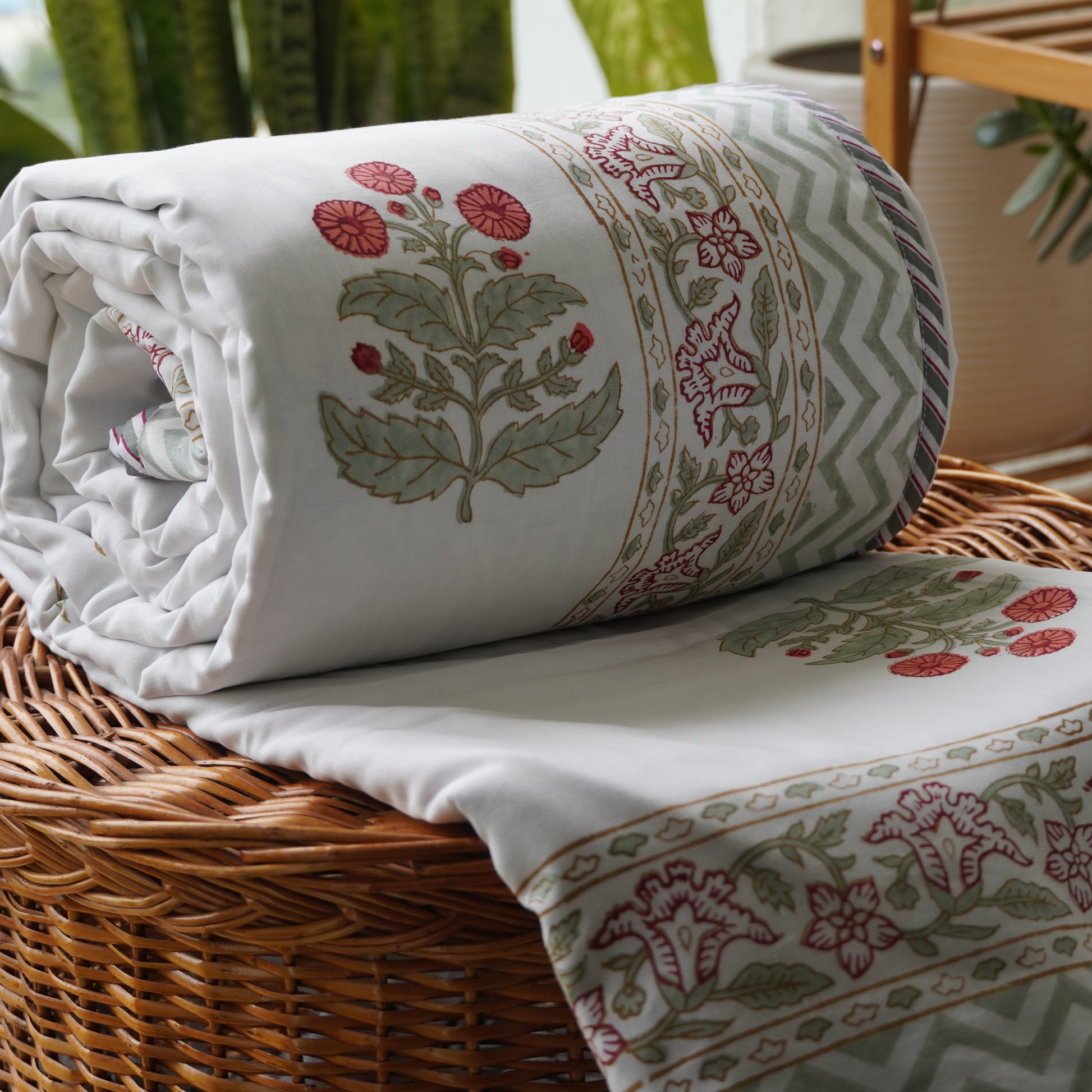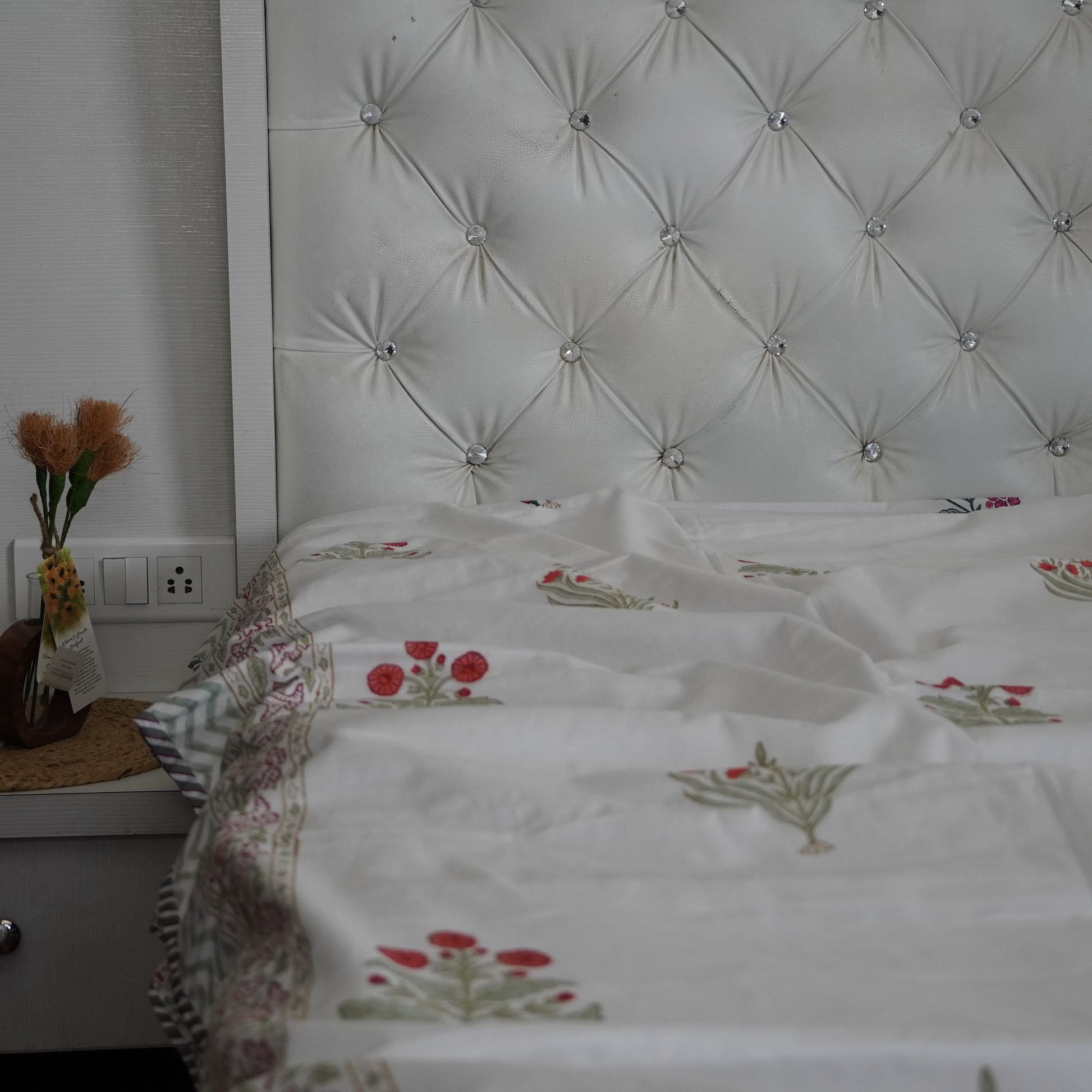 Experience the unmatched comfort of our handblocked AC dohar. Made with 100% pure mul cotton with a flannel sheet in between, this reversible dohar is soft and breathable. Perfect for all seasons, it keeps you warm in winter and cool in summer.